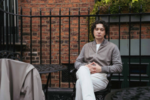 Made in Italy, the Gea full zip bomber in brown blends tactile contrast with contemporary design. A statement piece that bridges casual ease with refined craftsmanship.