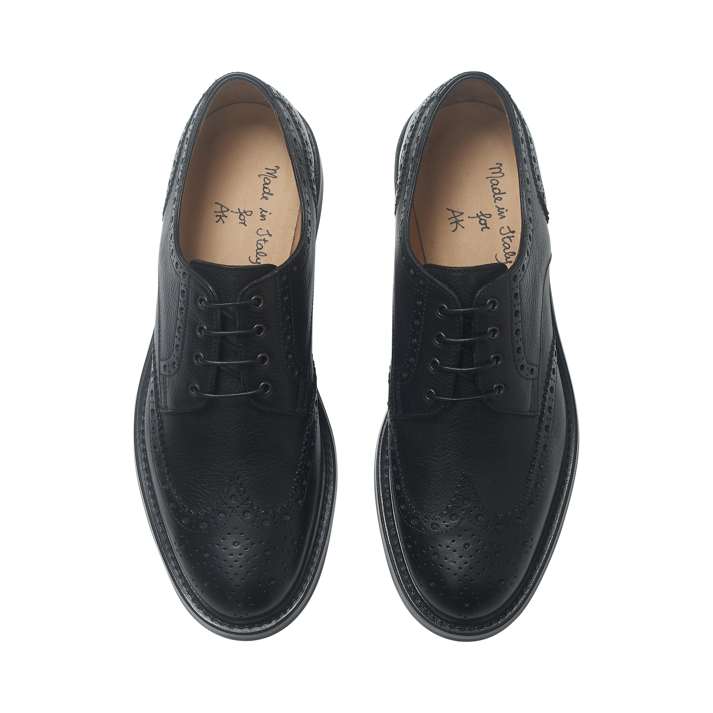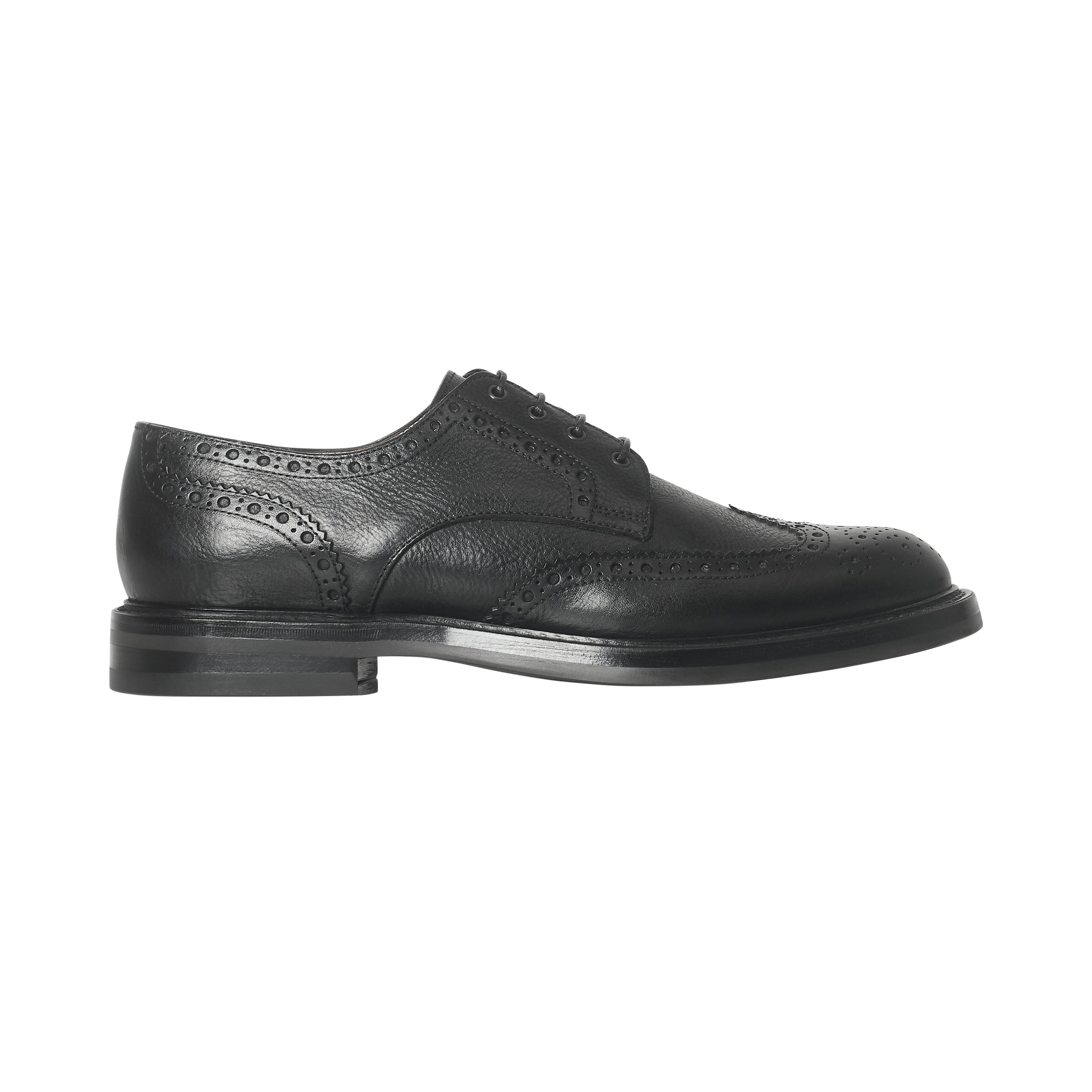 Made in Italy, our Derby brogues in black are crafted from grained calf leather, offering a rich texture and enduring character. Set on a robust Vibram Eaton sole, they provide exceptional comfort, traction, and durability. The classic brogue detailing adds a touch of tradition, while the clean silhouette keeps the look contemporary. A versatile shoe that bridges formal and casual dressing with timeless sophistication.