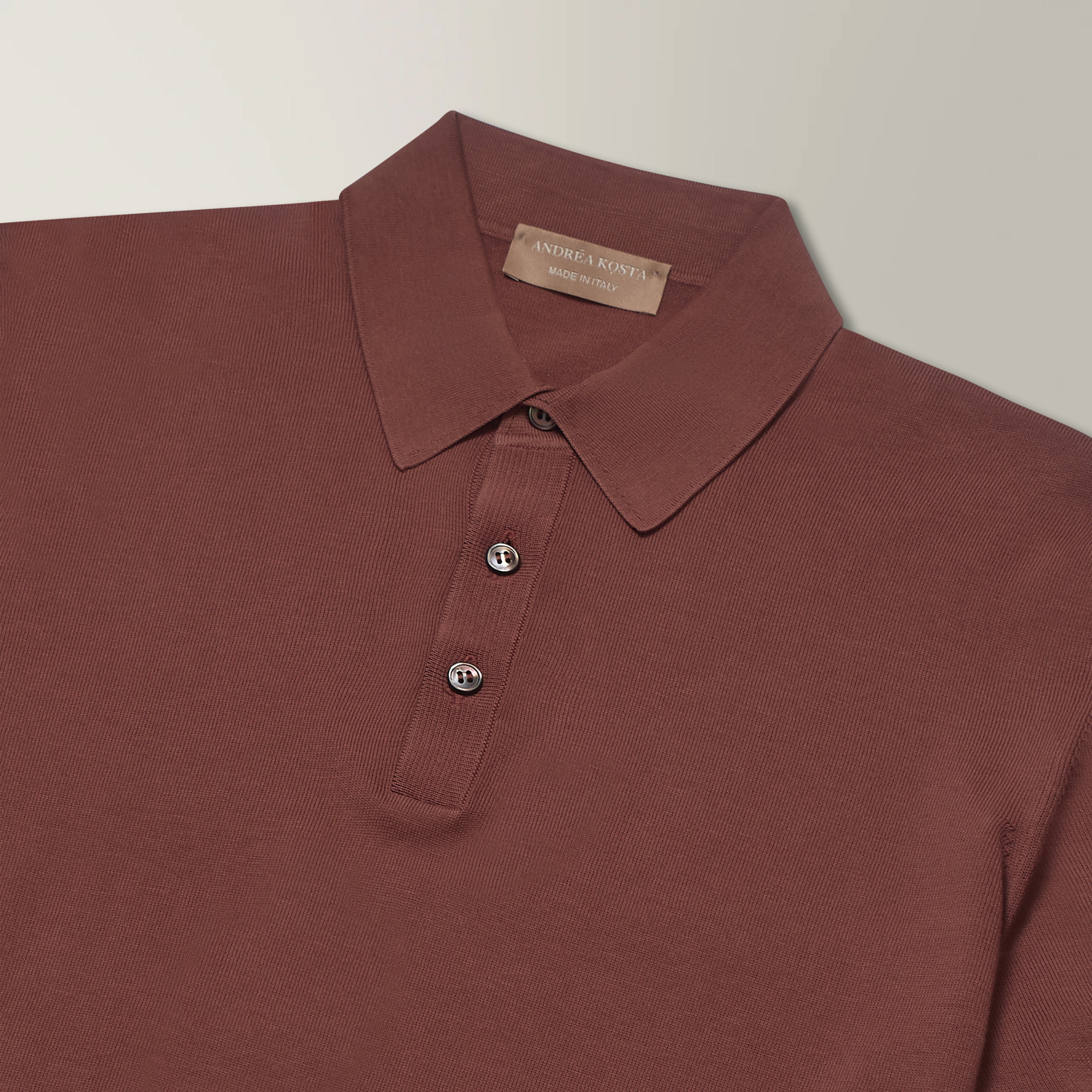 The Knitted Polo in terracotta is crafted in Italy from 100% cotton, produced in a fine knit that delivers softness with measured structure. The silhouette falls clean through the body, maintaining clarity without rigidity.