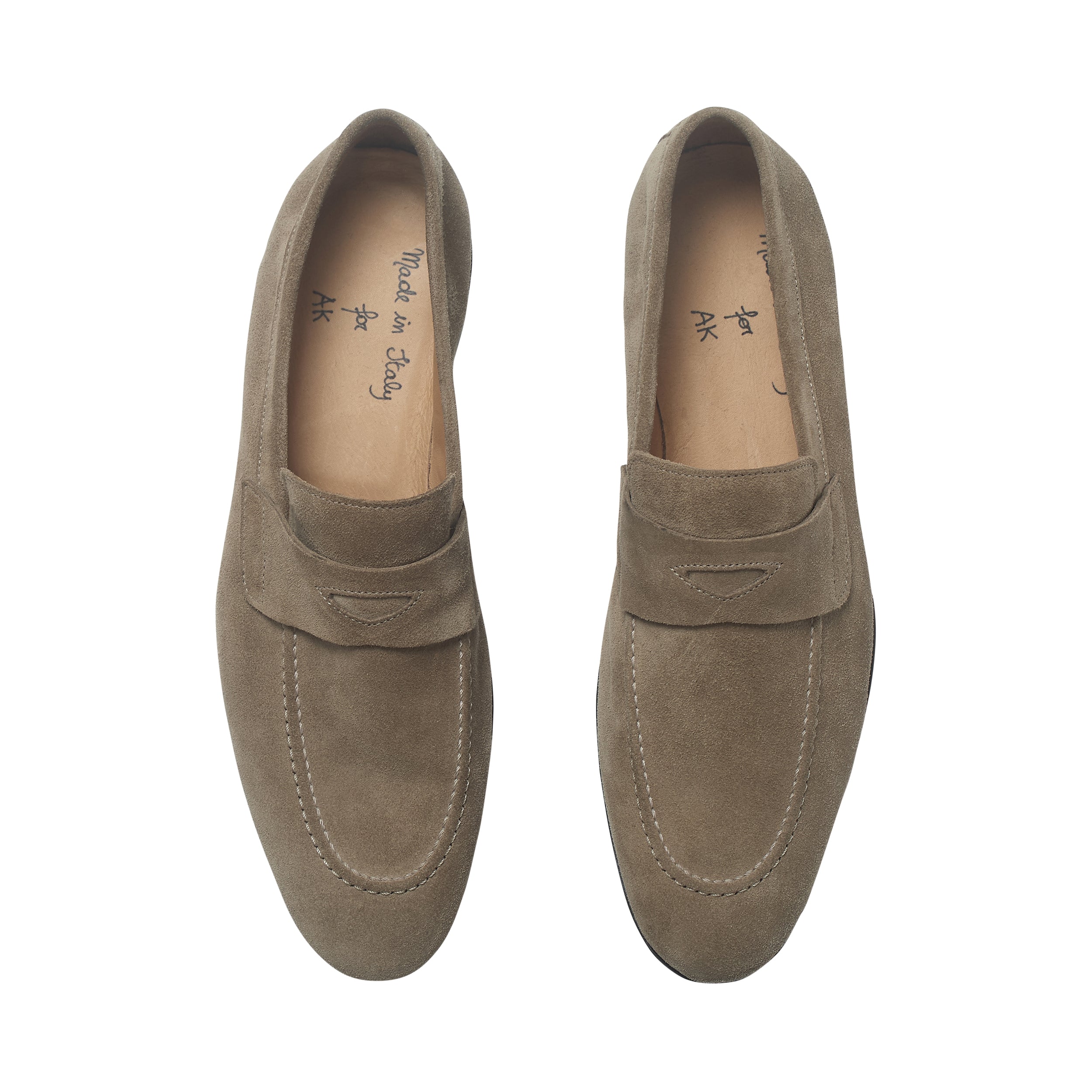 Made in Italy, our penny loafers in taupe are crafted from supple suede, offering a refined balance of comfort and sophistication. The soft texture and clean silhouette make them an effortless choice for both tailored and casual looks. Set on a durable leather sole, they provide lasting comfort and understated elegance - a timeless shoe that embodies modern craftsmanship and versatility.
