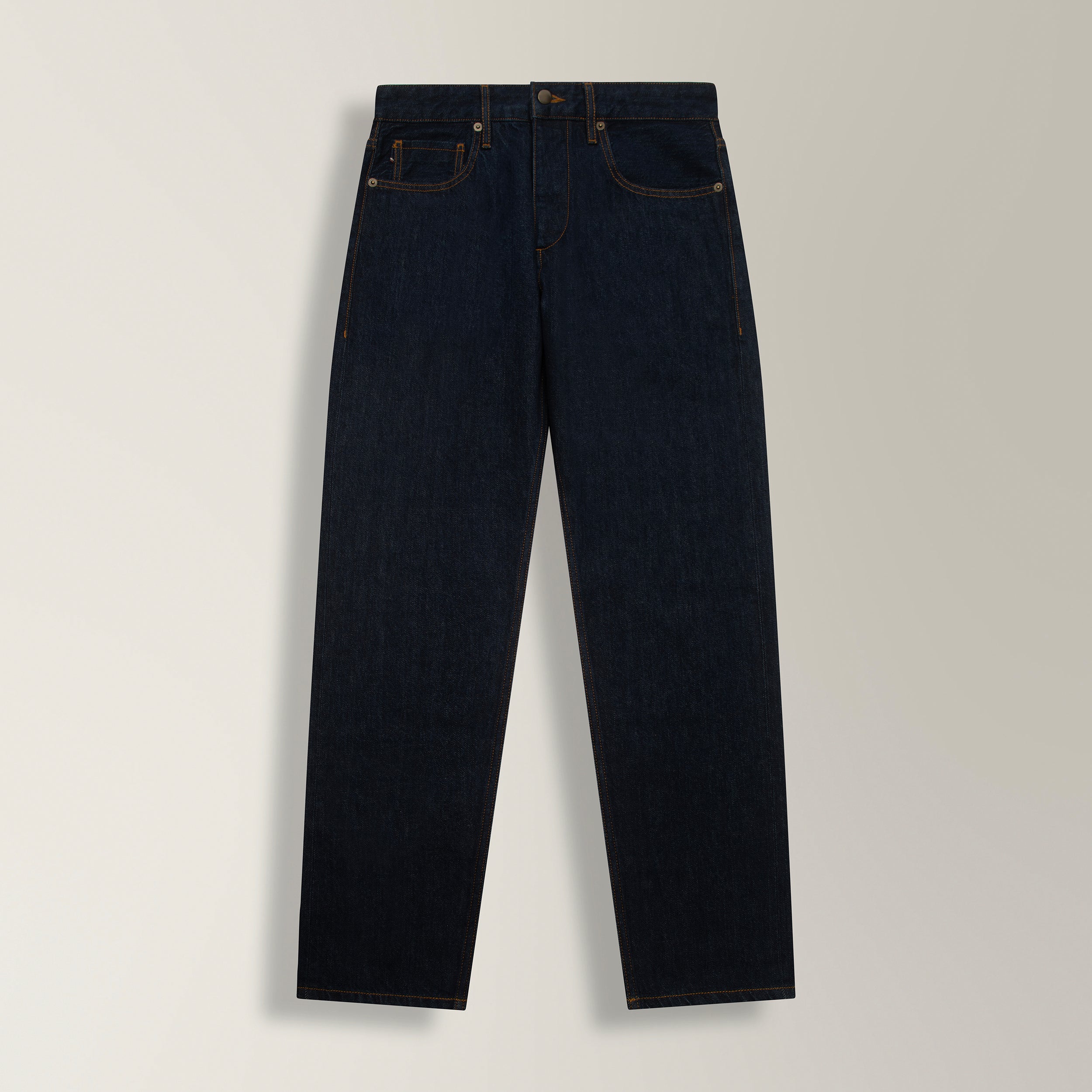 Made in Italy, our Selvedge Jeans in dark wash are crafted from 100% cotton denim woven on traditional shuttle looms, delivering authentic texture and lasting quality. Cut in a regular fit, they feature a classic button fly, reinforced brass buttons and rivets, and a clean selvedge edge finish. The deep indigo tone and structured handle give them timeless character, a true staple that balances craftsmanship, durability, and effortless style.