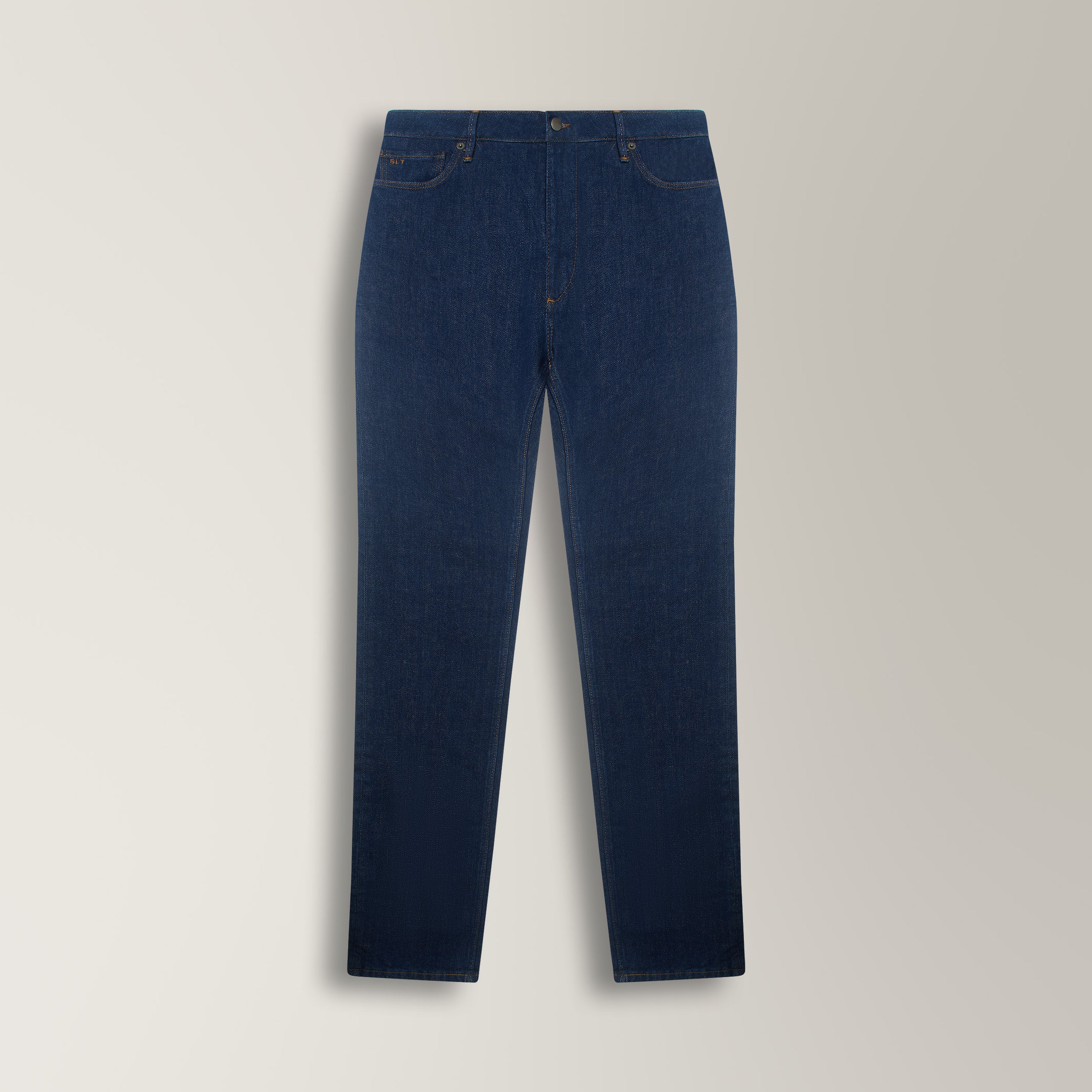 Made in Italy, our slim fit jeans in dark wash are crafted from a premium cotton blend with a hint of stretch for comfort and flexibility. Designed with a comfort waistband, zip closure, and belt loops, they offer a clean, modern silhouette that sits naturally on the waist. The dark wash adds depth and versatility, making these jeans an effortless choice for both casual and smart-casual styling.