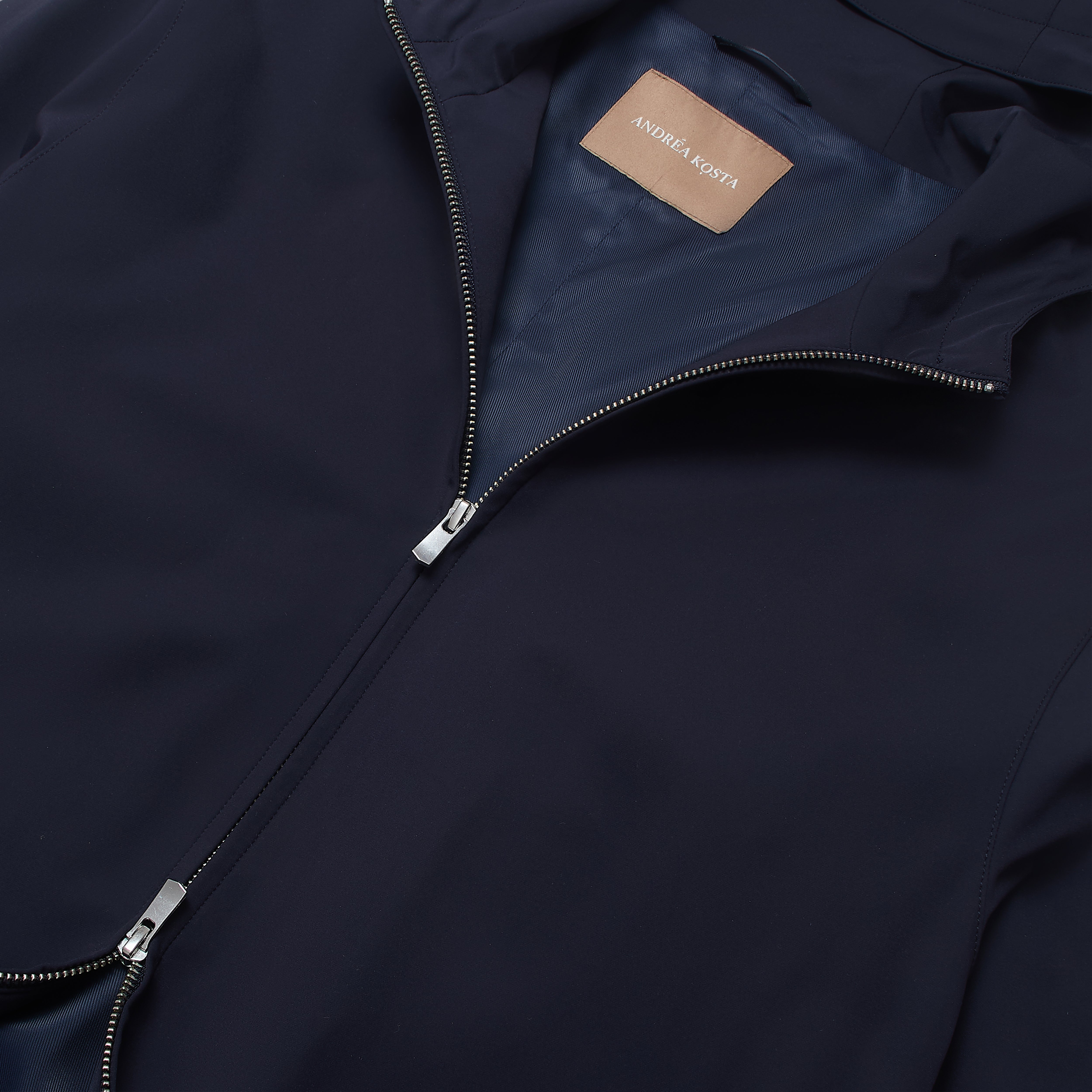 Our navy technical hooded bomber is designed as a functional outer layer with a clean, controlled profile. The silhouette is intentionally restrained, allowing performance-driven details to integrate without visual excess.