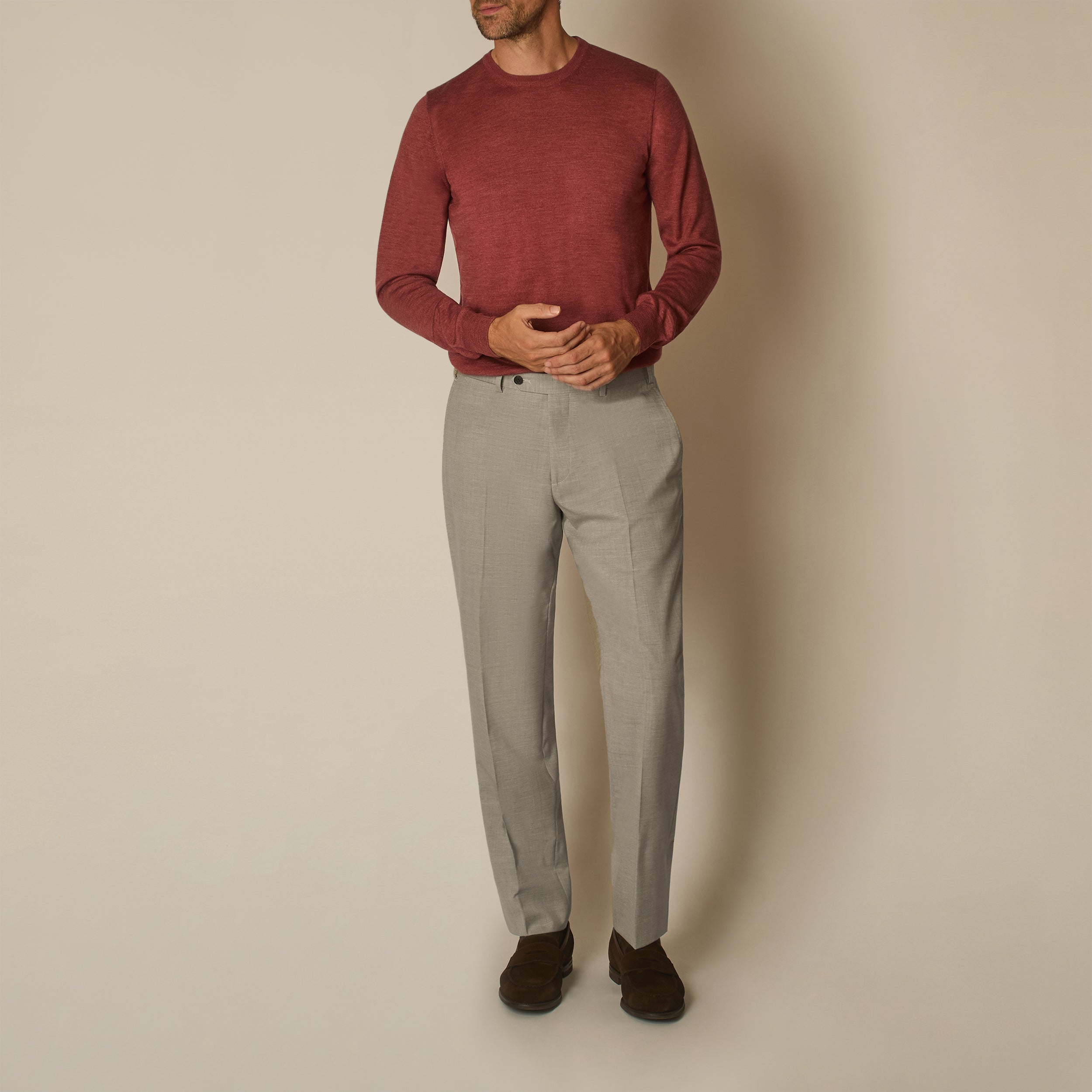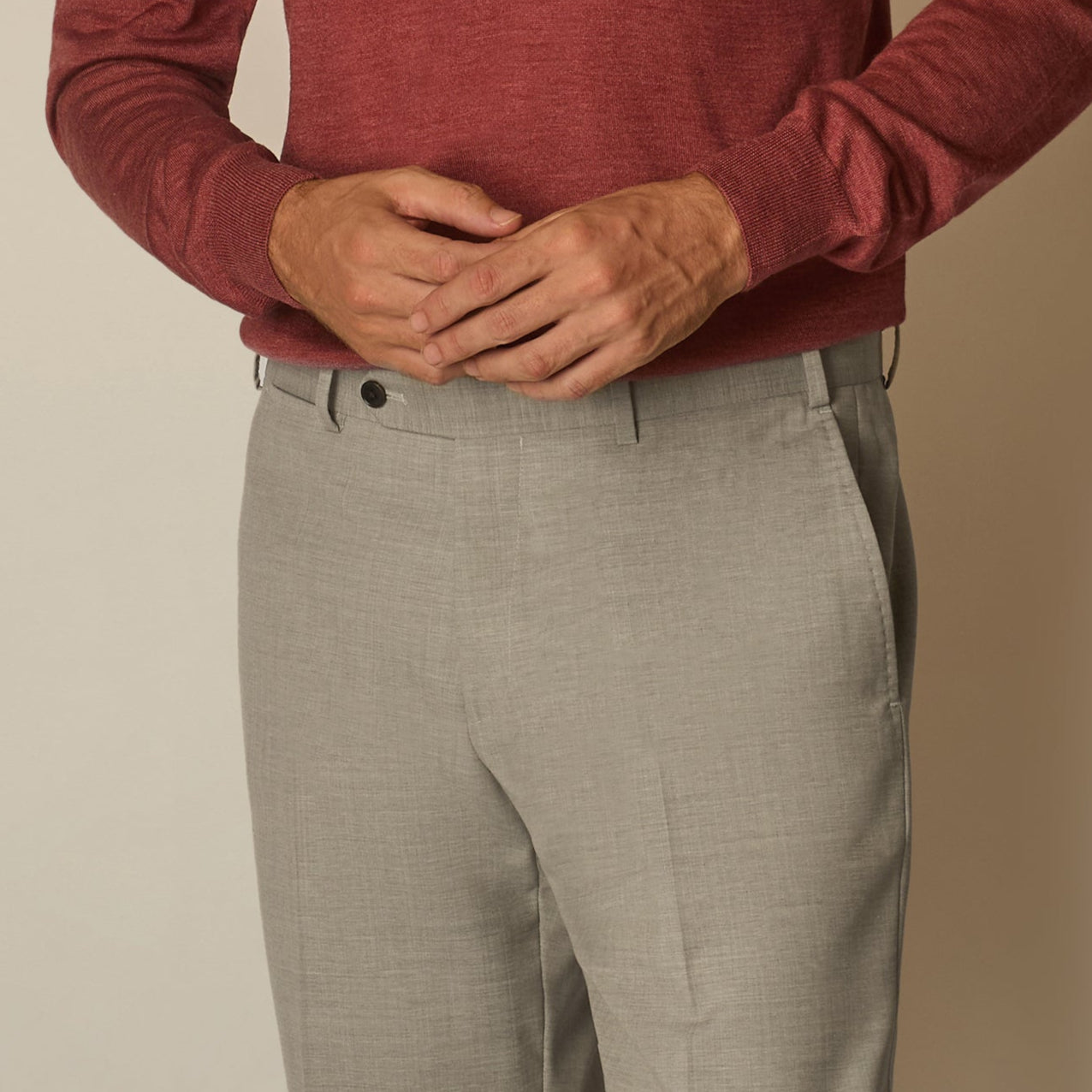 Tailored from 100% wool by Vitale Barberis Canonico, these light grey formal trousers are crafted in S110 2-ply tropical wool for a lightweight, refined drape. Designed with a flat front and belt loops, they feature a single right back pocket and an unfinished hem ready for custom tailoring. A versatile choice for both business and formal occasions, combining exceptional comfort with timeless style.