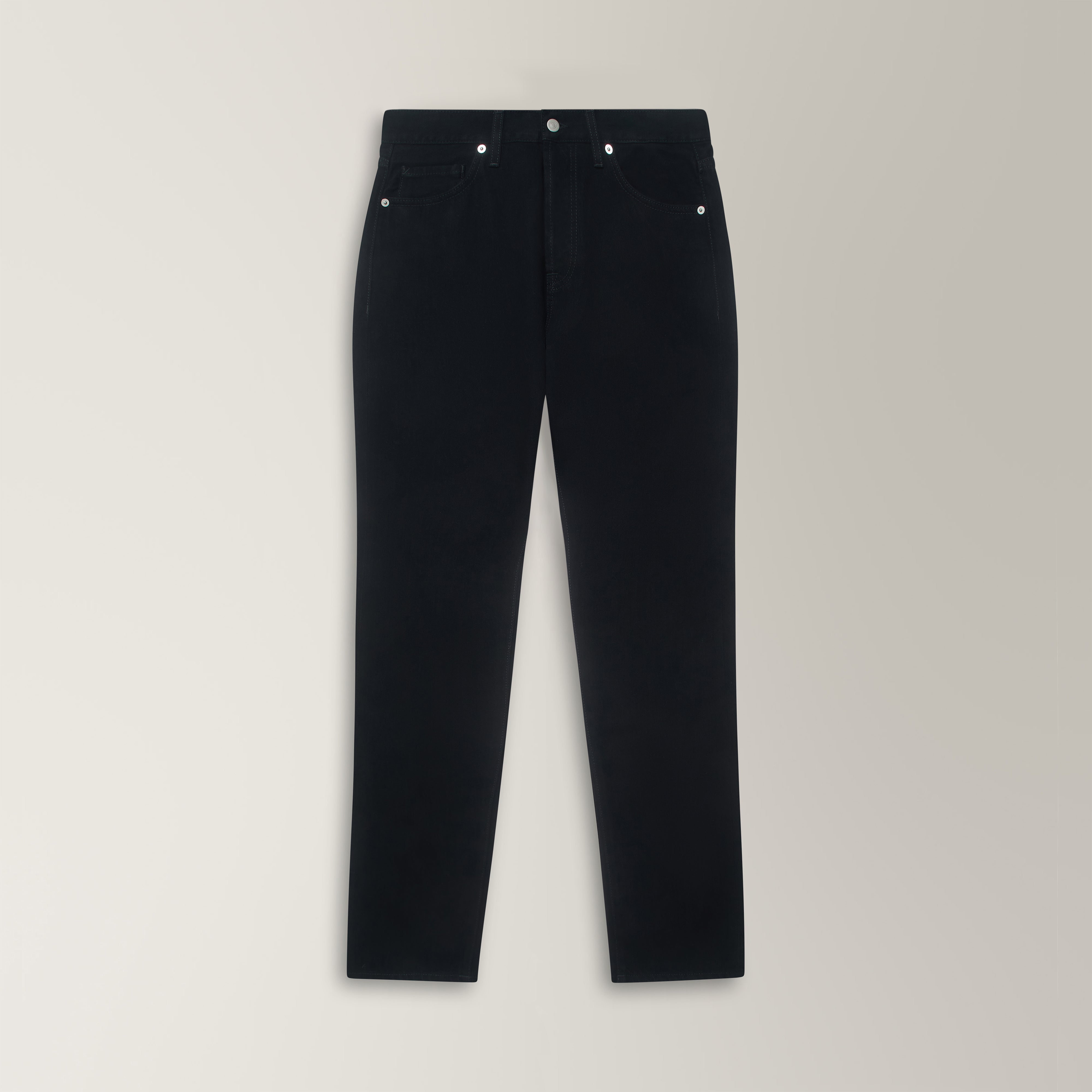 Made in Italy, our Veneto jeans in black are crafted from mid-weight 11oz denim, woven from 100% cotton on traditional shuttle looms for a soft yet durable feel. Cut with a mid-to-high rise and a gently tapered leg, they’re designed to sit comfortably and pair effortlessly with or without tailoring. Subtle detailing including a button fly, external coin pocket, and a suede back patch - nods to classic denim design while maintaining a modern, refined look. The black denim fabric is exclusively bleached into our signature range of washes, achieving a tone that feels contemporary yet timeless, refined yet easy-wearing. A clean, versatile jean designed for effortless everyday style.